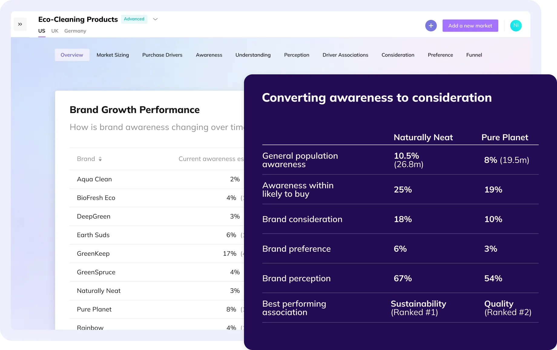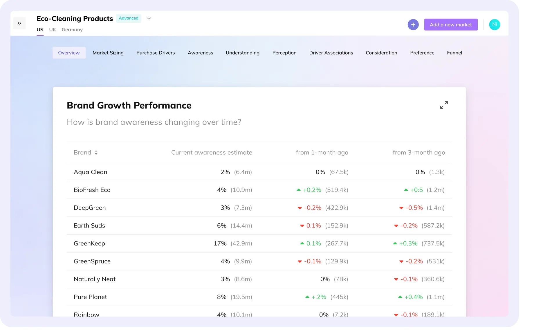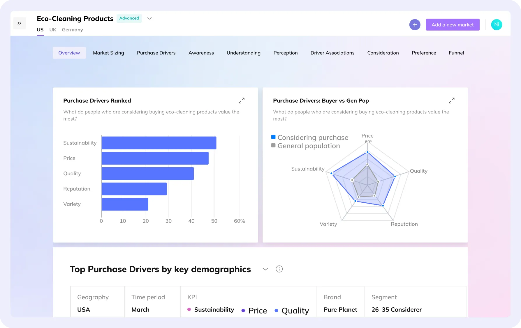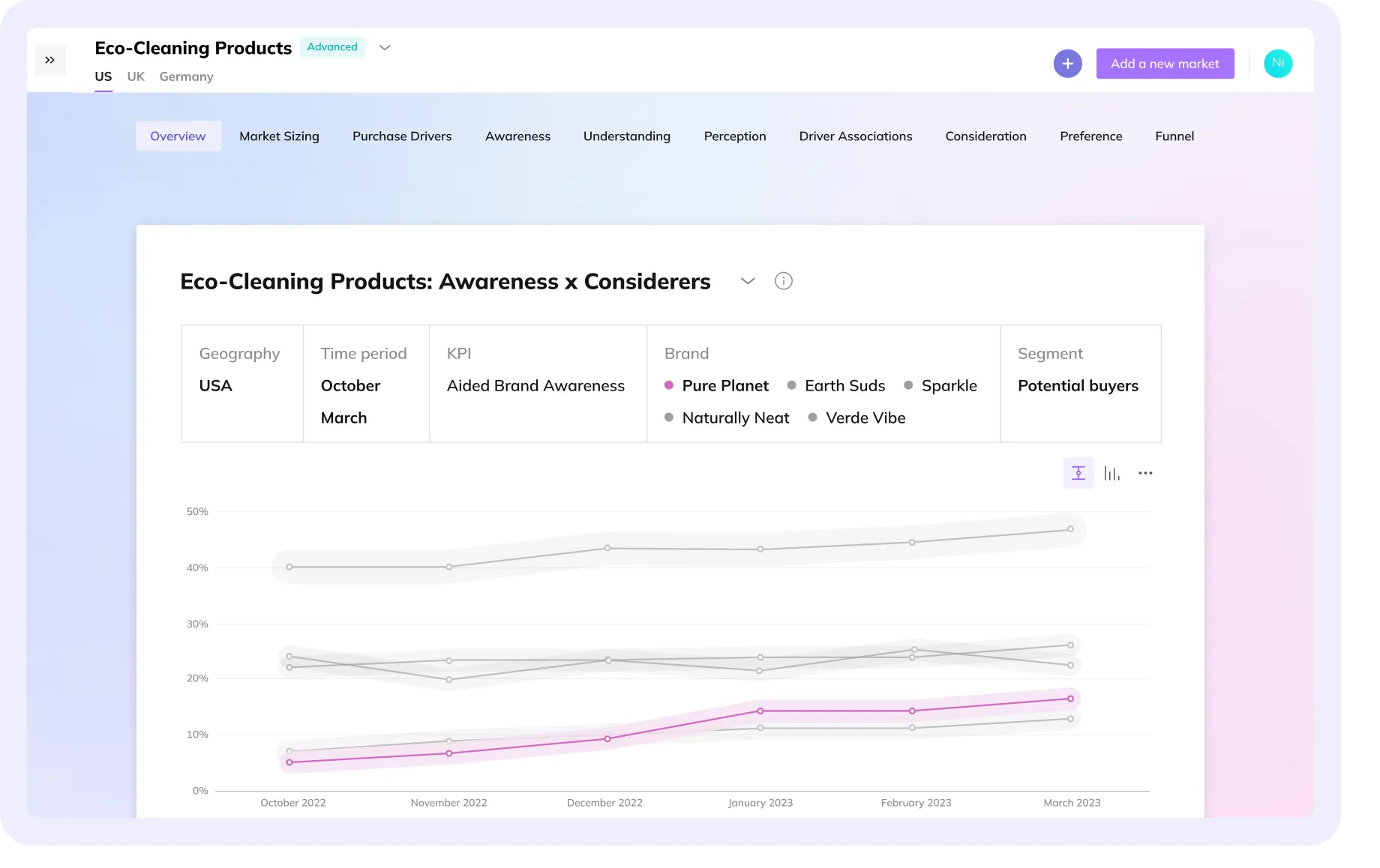 Make effective marketing decisions with insights on how your brand is performing in your target market. Increase marketing ROI, identify opportunities in new markets and stand out from your competitors.
